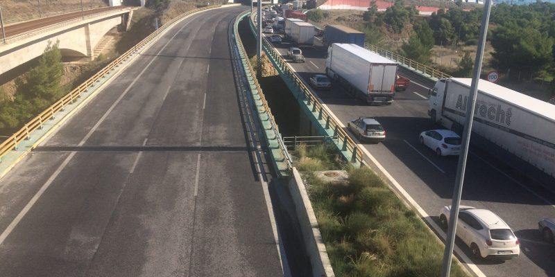 Ωστόσο, επειδή έχει συσσωρευτεί μεγάλος όγκος αυτοκινήτων και ειδικώς φορτηγών, η κίνηση γίνεται με τρομερά αργούς ρυθμούς.