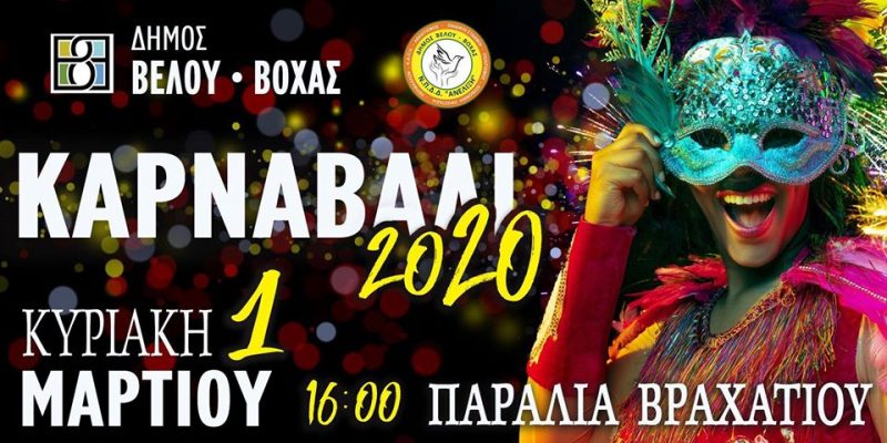 Ο δήμος Βέλου Βόχας ανακοίνωσε το πρόγραμμά του για το καρναβάλι, το οποίο θα πραγματοποιηθεί στην παραλία Βραχατίου για 7η φορά την Κυριακή 1η Μαρτίου.