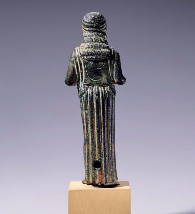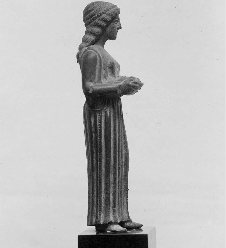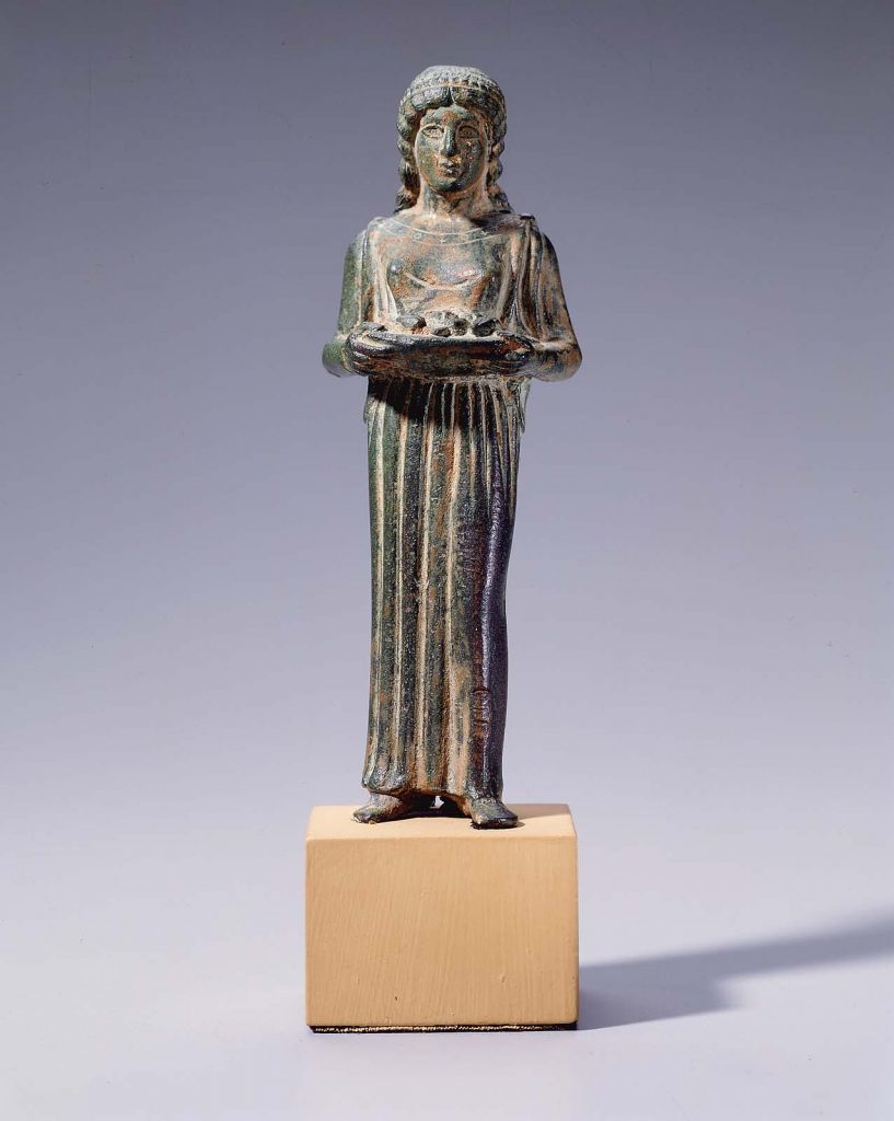 ΚΟΡΙΝΘΟΣ: Χάλκινη πεπλοφόρος κόρη ή ιέρεια που κρατάει φιάλη με προσφορές.