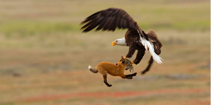 Φαλακρός αετός και κόκκινη αλεπού. Φωτογραφία: Kevin Ebi / Audubon Photography Awards