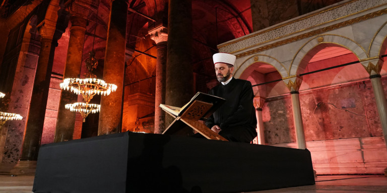 «Το απόγευμα, στο πλαίσιο των εορταστικών εκδηλώσεων της Αλωσης που διοργανώνει το υπουργείο Τουρισμού και Πολιτισμού της Τουρκίας, στην Αγία Σοφία θα αναγνωστεί προσευχή της Αλωσης και θα διαβαστούν προσευχές», δήλωσε ο Ερντογάν.