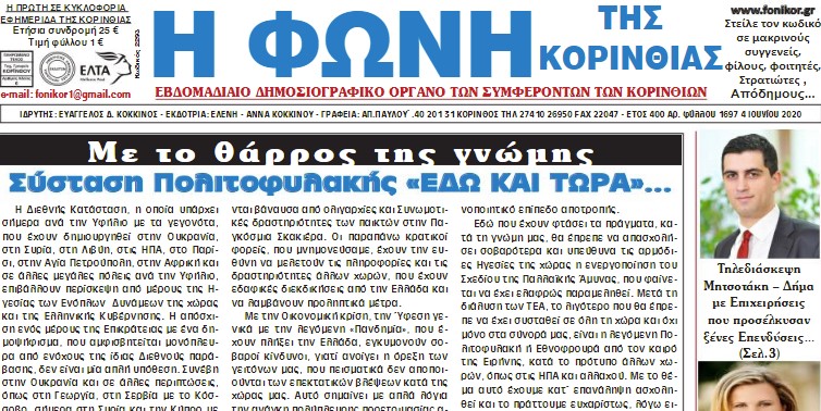 ΕΦΗΜΕΡΙΔΕΣΦΩΝΗ ΤΗΣ ΚΟΡΙΝΘΙΑΣ ΦΩΝΗ ΤΗΣ ΚΟΡΙΝΘΙΑΣ T.1697 4 Ιουνίου 2020 By 8eCUgvCwsa 09/June/2020 ShareTweet 0
