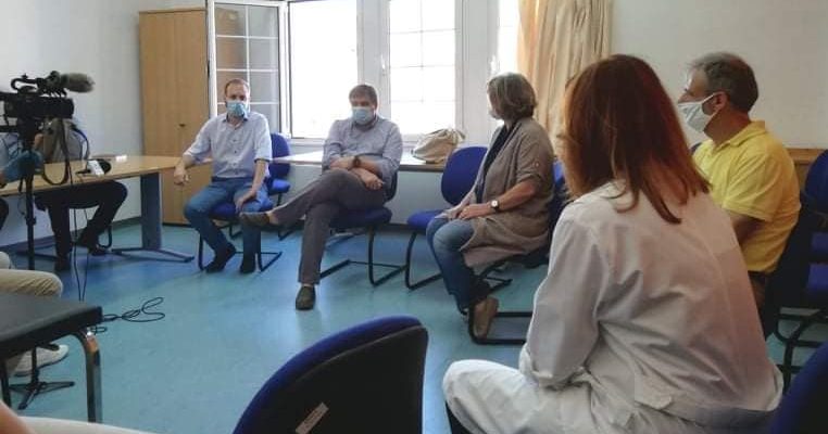 Η επίσκεψη συνεχίστηκε στο Νοσοκομείο Κορίνθου όπου υπήρξε συνάντηση με τον διοικητή του Νοσοκομείου Γρηγόρη Καρπούζη, τον πρόεδρο του Ιατρικού Συλλόγου Κορινθίας Χρυσοβαλλάντη Μέλλο, τον πρόεδρο των εργαζομένων του Νοσοκομείου Παντ. Αρβανιτάκη και τους ιατρούς και μέλη του Δ.Σ. του Νοσοκομείου Χρ. Χασικίδη, Ν. Καμπά, Κ. Κοροβέση και Ηλ. Κοφινά.