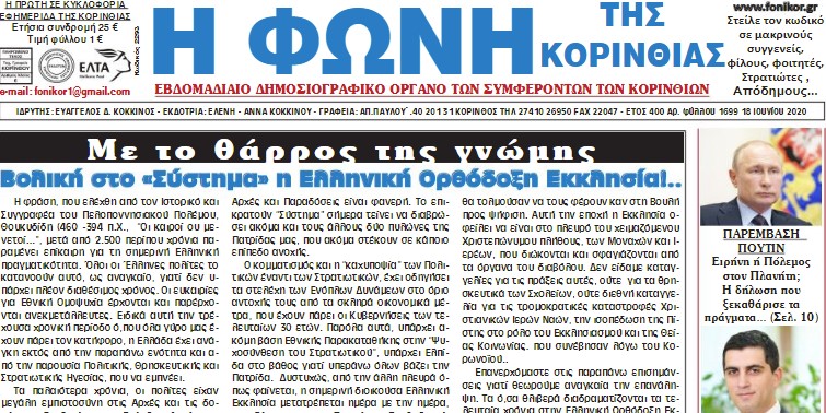 ΕΦΗΜΕΡΙΔΕΣΦΩΝΗ ΤΗΣ ΚΟΡΙΝΘΙΑΣ ΦΩΝΗ ΤΗΣ ΚΟΡΙΝΘΙΑΣ T.1699 18 Ιουνίου 2020 By 8eCUgvCwsa 23/June/2020 ShareTweet 0