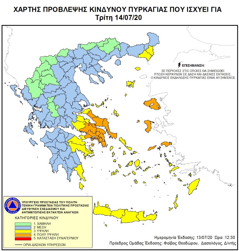 Χάρτης Πρόβλεψης Κινδύνου Πυρκαγιάς για 14 -7-2020