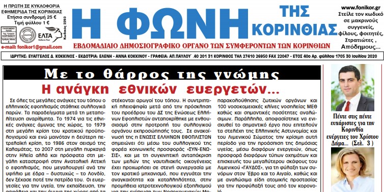 ΕΦΗΜΕΡΙΔΕΣΦΩΝΗ ΤΗΣ ΚΟΡΙΝΘΙΑΣ ΦΩΝΗ ΤΗΣ ΚΟΡΙΝΘΙΑΣ T.1705 30 Ιουλίου 2020 By 8eCUgvCwsa 04/August/2020 ShareTweet 0