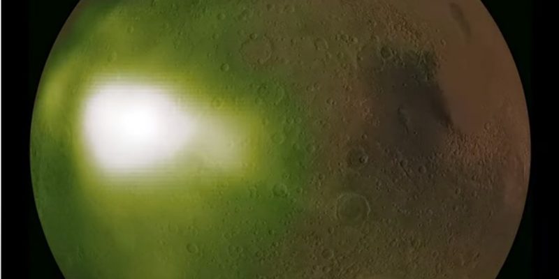 Μια πράσινη λάμψη εντόπισαν επιστήμονες στην ατμόσφαιρα του Άρη: Αντίστοιχη παρατηρείται κατά καιρούς από αστροναύτες στον Διεθνή Διαστημικό Σταθμό και προέρχεται από άτομα οξυγόνου όταν διεγείρονται από το φως του ήλιου.
