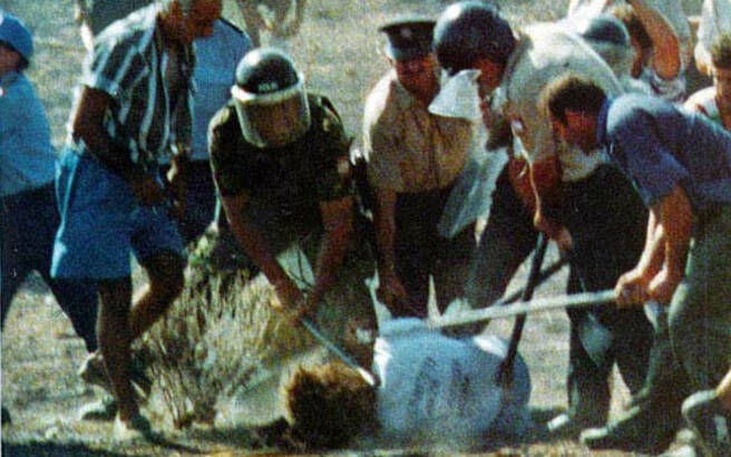 Τα μέλη της Eιρηνευτικής Δύναμης του ΟΗΕ, τα οποία ήταν παρόντα στην σκηνή, επέλεξαν να μην επέμβουν.