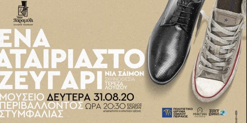 Στα πλαίσια της διοργάνωσης «Σικυώνια 2020» του Δ. Σικυωνίων και σε συνεργασία με το Μουσείο Περιβάλλοντος Στυμφαλίας, η θεατρική σκηνή Σοφία Σπούλου του Συλλόγου Πολιτισμού “Σαν παραμύθι” παρουσιάζει την θεατρική παράσταση «Ένα αταίριαστο ζευγάρι» του Νιλ Σάιμον σε σκηνοθεσία Τερέζας Λουίζου.