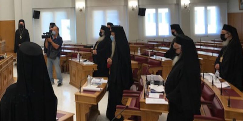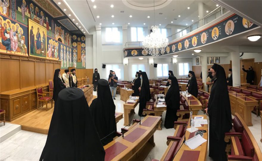 Εναρμονισμένοι με την σύσταση για χρήση μάσκας σε κλειστούς χώρους εμφανίστηκαν σήμερα τα μέλη της Διαρκούς Ιεράς Συνόδου που συνεδρίασε σήμερα με τη νέα της σύνθεση στην πρώτη συνεδρία της υπό την προεδρία του Αρχιεπισκόπου Αθηνών και πάσης Ελλάδος Ιερωνύμου.