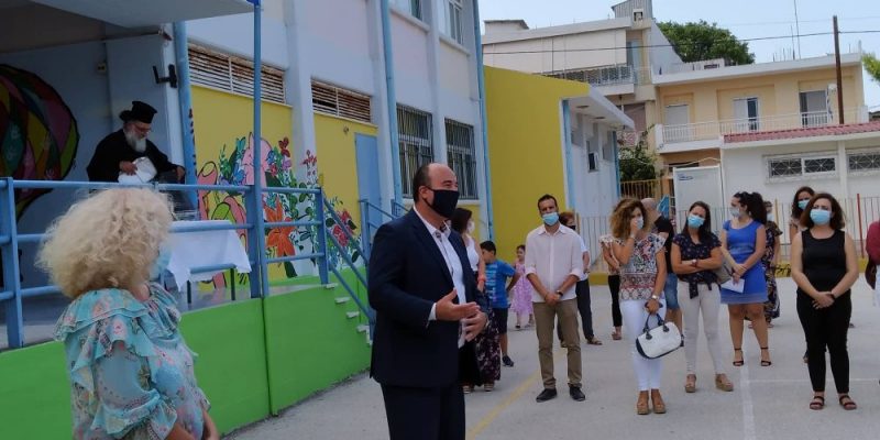 Σε προκαθορισμένες για την ασφάλεια όλων αποστάσεις βρισκόμενος με μέρος παιδιών, γονέων και διδασκόντων, ο κ. Γκιολής ευχήθηκε για μία δυνατή, δημιουργική, όμορφη με υγεία και φώτιση σχολική χρονιά. «Η συμβολή μας ως γονείς με υπομονή και επιμονή στο δύσκολο έργο της εκπαιδευτικής κοινότητας, είναι απαραίτητη όσο ποτέ άλλοτε, έτσι ώστε όλοι μαζί να πετύχουμε το καλύτερο αποτέλεσμα για τα παιδιά και για τον τόπο μας».