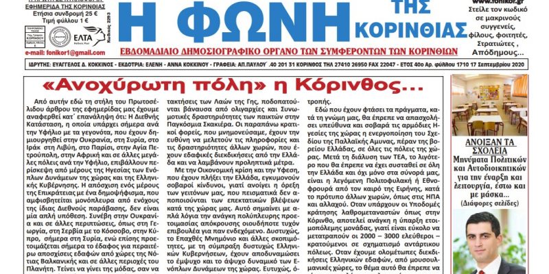 ΕΦΗΜΕΡΙΔΕΣΦΩΝΗ ΤΗΣ ΚΟΡΙΝΘΙΑΣ ΦΩΝΗ ΤΗΣ ΚΟΡΙΝΘΙΑΣ T.1710 17 Σεπτεμβρίου 2020 By 8eCUgvCwsa 22/September/2020 ShareTweet 0