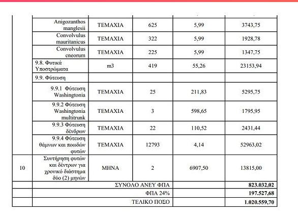 Στη δεύτερη σύμβαση, το κόστος ανήλθε στο 1.020.559,70 ευρώ και ανάδοχος ήταν η εταιρεία “Urban Innovation Μονοπρόσωπη ΙΚΕ”.Τα χρήματα δόθηκαν για ζαρντινιέρες -με τιμές που κυμαίνονταν από 4.605 ευρώ έκαστη, ως 506.55 ευρώ έκαστη- παγκάκια με ζαρντινιέρες στο Σύνταγμα που κοστίζουν 5.249,70 ευρώ το καθένα, παγκάκια με φωτισμό που κοστίζουν 911,79 ευρώ, φοινικοειδή φυτά (Ουασινγκτόνιες) με κόστος 1.565,70 το καθένα, άλλα φυτά, φυτικά υποστρώματα καθώς και εργασίες συντήρησής τους για δύο μήνες.