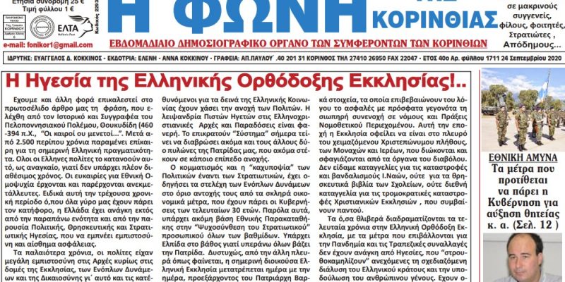ΕΦΗΜΕΡΙΔΕΣΦΩΝΗ ΤΗΣ ΚΟΡΙΝΘΙΑΣ ΦΩΝΗ ΤΗΣ ΚΟΡΙΝΘΙΑΣ T.1711 24 Σεπτεμβρίου 2020 By 8eCUgvCwsa 29/September/2020 ShareTweet 0