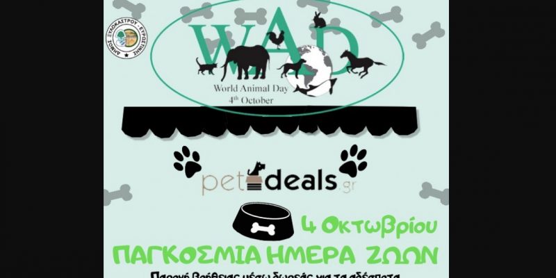 Ο Δήμος Ξυλοκάστρου – Ευρωστίνης με αφορμή την ημέρα αφιερωμένη στην “ΠΑΓΚΟΣΜΙΑ ΗΜΕΡΑ ΤΩΝ ΖΩΩΝ” παρέχει βοήθεια μέσω δωρεάς για τα αδέσποτα του Δήμου, σε συνεργασία με petshop.