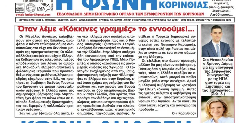 ΕΦΗΜΕΡΙΔΕΣΦΩΝΗ ΤΗΣ ΚΟΡΙΝΘΙΑΣ ΦΩΝΗ ΤΗΣ ΚΟΡΙΝΘΙΑΣ T.1712 1 Οκτωβρίου 2020 By 8eCUgvCwsa 04/October/2020 ShareTweet 0