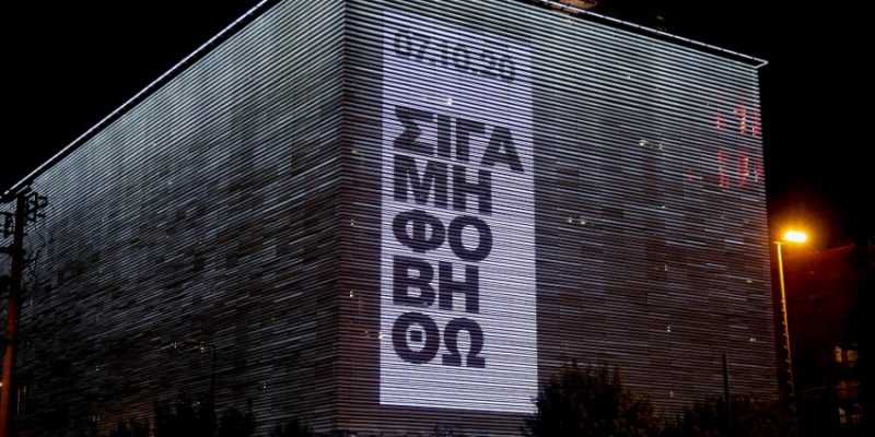 Με το μήνυμα «σιγά μην φοβηθώ» φωταγωγήθηκε τμήμα του κτηρίου της Στέγης Ιδρύματος Ωνάση το απόγευμα της Κυριακής, ενόψει της δικαστικής απόφασης για την Χρυσή Αυγή την Τετάρτη.