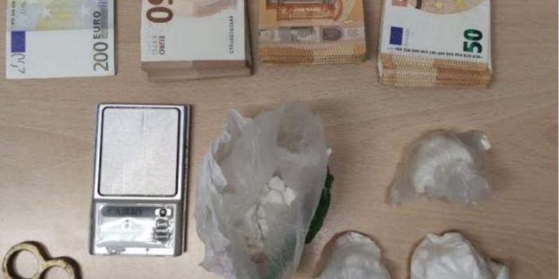 Ο δράστης αιφνιδιάστηκε όταν τους είδε στην πόρτα το, αλλά δεν τόλμησε να προσπαθήσει να διαφύγει και βρέθηκε αμέσως με χειροπέδες. Κατά την έρευνα που ακολούθησε στο σπίτι του, οι αστυνομικοί κατέσχεσαν ποσότητες κοκαΐνης συνολικού βάρους 142,9 γραμμαρίων, κατεργασμένη κάνναβη τύπου «σοκολάτα» βάρους 6,72 γραμμαρίων, μια σιδερογροθιά και μια ζυγαριά ακριβείας.