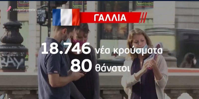 Νέο αρνητικό ημερήσιο ρεκόρ κρουσμάτων υπήρξε στη Γαλλία. Μέσα στο τελευταίο 24ωρο, οι νέες μολύνσεις άγγιξαν τις 19 χιλιάδες, ενώ 80 ήταν οι θάνατοι. Περαιτέρω αυστηροποίηση των περιοριστικών μέτρων προανήγγειλε ο πρόεδρος Μακρόν, αν και απέκλεισε εκ νέου, μία νέα πανεθνική καραντίνα.