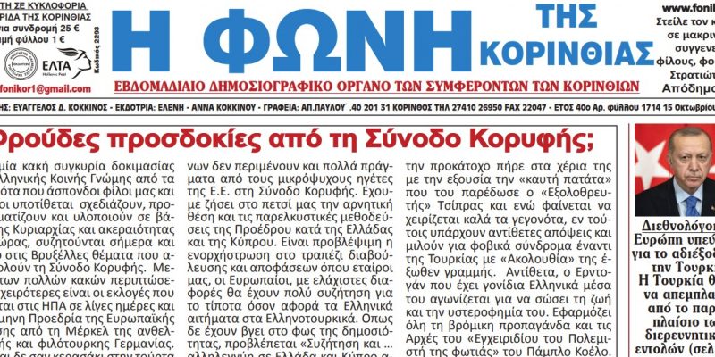 ΕΦΗΜΕΡΙΔΕΣΦΩΝΗ ΤΗΣ ΚΟΡΙΝΘΙΑΣ ΦΩΝΗ ΤΗΣ ΚΟΡΙΝΘΙΑΣ T.1714 15 Οκτωβρίου 2020 By 8eCUgvCwsa 20/October/2020 ShareTweet 0
