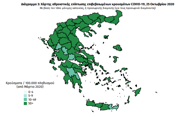 Τέλος, έχουμε 10 ακόμα καταγεγραμμένους θανάτους και 574 θανάτους συνολικά στη χώρα. 217 (37.8%) γυναίκες και οι υπόλοιποι άνδρες. Η διάμεση ηλικία των θανόντων συμπολιτών μας ήταν τα 79 έτη και το 96.3% είχε κάποιο υποκείμενο νόσημα ή/και ηλικία 70 ετών και άνω.