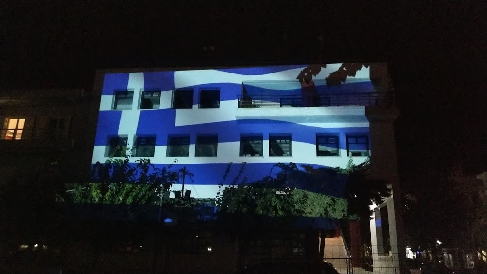 Ο δήμος Κορίνθου «έντυσε» το Δημαρχιακό Μέγαρο στα γαλανόλευκα, με μια τεράστια ελληνική σημαία να κυματίζει στην πρόσοψη του κτηρίου με την μέθοδο του 3d video mapping.