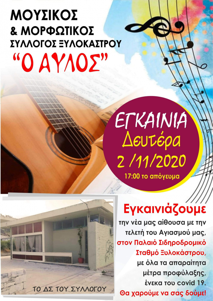 ΜΟΥΣΙΚΗΠΟΛΙΤΙΣΜΟΣ Εγκαίνια του Μουσικού & Μορφωτικού Συλλόγου ” ο Αυλός” στο Ξυλόκαστρο στις 2 Νοεμβρίου. By 8eCUgvCwsa 01/November/2020 ShareTweet 0