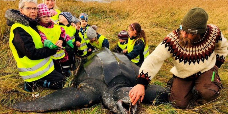Μια παρέα παιδιών ανακάλυψαν μια τεράστια δερματοχελώνα στην ακτή της νότιας Γιουτλάνδης, ένα νησί της Δανίας.