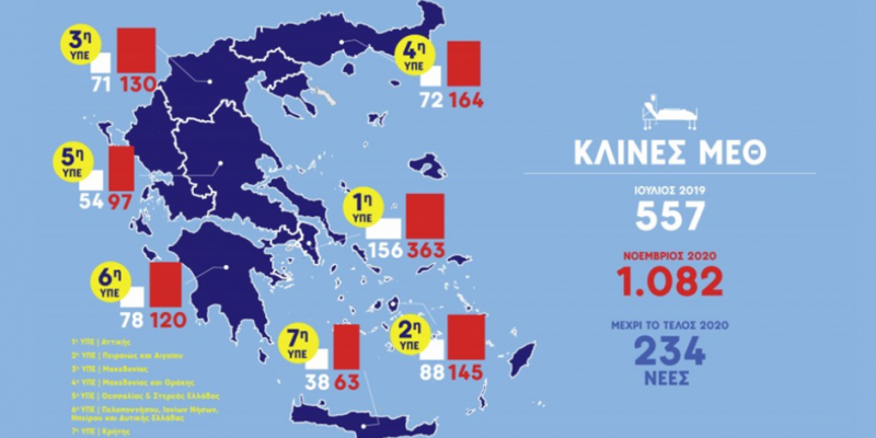 Για τις κλίνες ΜΕΘ ο υπουργός Υγείας τόνισε ότι: «Είχαμε 557 τον Ιούλιο του 2019 από την προηγούμενη κυβέρνηση και σήμερα έχουμε 1.082 και έρχονται 234 νέες μέχρι το τέλος του έτους».