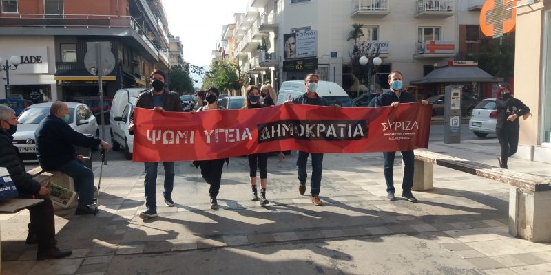 Αντιπροσωπεία της Νομαρχιακής Επιτροπή ΣΥΡΙΖΑ-ΠΣ Κορινθίας, τιμώντας την σημερινή επέτειο της Εξέγερσης του Πολυτεχνείου, τηρώντας όλα τα απαραίτητα μέτρα, πραγματοποίησε πορεία σε κεντρικούς δρόμους της πόλης της Κορίνθου, και απόθεσε λουλούδια στο Μνημείο του Σωκράτη, ως ελάχιστο φόρο τιμής στους αγωνιστές της Δημοκρατίας, ως ελάχιστη αντίδραση στις αντιδημοκρατικές αποφάσεις της κυβέρνησης, για να γιγαντωθεί και η τιμή και η αντίδραση.