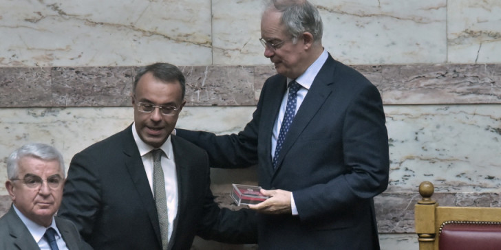 Σε ψηφιακή μορφή και μέσα σε ένα κουτάκι που έφερε την ελληνική σημαία, ο υπουργός Οικονομικών Χρήστος Σταϊκούρας κατέθεσε στην Ολομέλεια τον προϋπολογισμό του κράτους για το 2021.