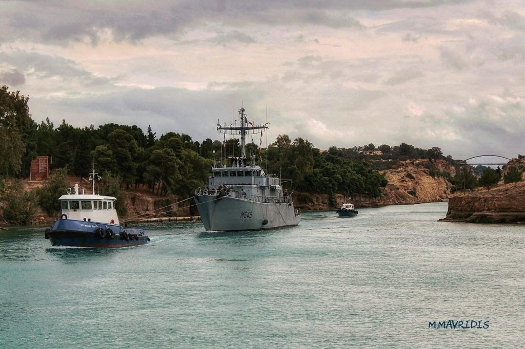 Το γαλλικό ναρκαλιευτικό FS ORION Μ 645 περνάει τη Διώρυγα με τα 55 μέλη του πληρώματός του.