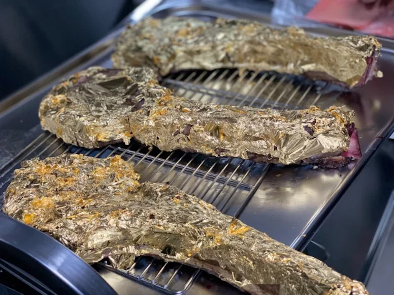 Οι πόρτες των ανελκυστήρων είναι κατασκευασμένες από πέντε τόνους χρυσού, επίχρυσα είναι -φυσικά – και τα μαχαιροπήρουνα, ενώ ακόμη και τα στέικ σερβίρονται κατά παραγγελία τυλιγμένα σε φύλλα χρυσού!