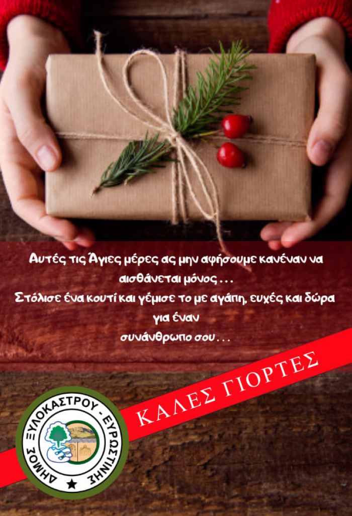 Ο Δήμος Ξυλοκάστρου – Ευρωστίνης, θέλοντας να ενισχύσει τον θεσμό του εθελοντισμού και της προσφοράς στον τόπο μας, σας καλεί σε ένα κάλεσμα αγάπης, σε μια κοινωνική δράση προσφοράς, τις άγιες μέρες των Χριστουγέννων! Με οδηγό πάντα την σκέψη στον συνάνθρωπο, αυτά τα Χριστούγεννα ζητούμε την συμμετοχή σας, προκειμένου να μοιράσουμε την ελπίδα και την χαρά.