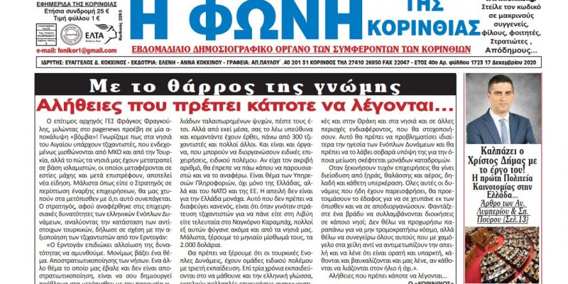 ΕΦΗΜΕΡΙΔΕΣΦΩΝΗ ΤΗΣ ΚΟΡΙΝΘΙΑΣ ΦΩΝΗ ΤΗΣ ΚΟΡΙΝΘΙΑΣ T.1723 17 Δεκεμβρίου 2020 By 8eCUgvCwsa 20/December/2020 ShareTweet 0