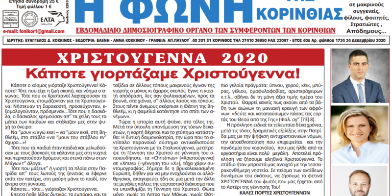 ΕΦΗΜΕΡΙΔΕΣΦΩΝΗ ΤΗΣ ΚΟΡΙΝΘΙΑΣ ΦΩΝΗ ΤΗΣ ΚΟΡΙΝΘΙΑΣ T.1724 24 Δεκεμβρίου 2020 By 8eCUgvCwsa 27/December/2020 ShareTweet 0