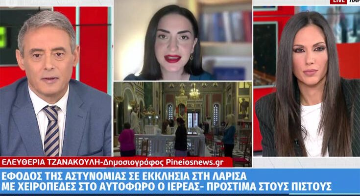 Πανικός επικράτησε σε ιερό ναό έξω από τη Λάρισα το πρωί της Κυριακής (3/1). Στην εκκλησία μπούκαρε η αστυνομία και οι αστυνομικοί φόρεσαν χειροπέδες και οδήγησαν στο αυτόφωρο τον ιερέα ενώ επέβαλαν πρόστιμα στους πιστούς.