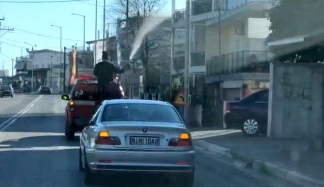 Πρόκειται για ιερέα της ενορίας του ΣΣ Λιανοκλαδίου, όπως χαρακτηριστικά μεταφέρει το lamiareport, ο οποίος χρησιμοποίησε πυροσβεστικό όχημα του Δήμου για να κάνει τον γύρο του χωριού και να ραντίσει με αγιασμό χάρη στη χρήση μάνικας όλο το χωριό.