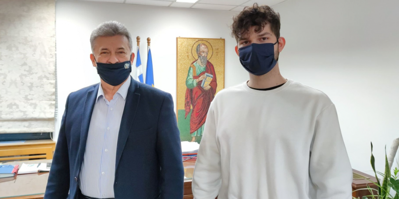Συνάντηση είχε ο Δήμαρχος Κορινθίων κ. Βασίλης Νανόπουλος με τον διακριθέντα στον Πανελλήνιο Διαγωνισμό Νεανικού Διηγήματος 2020 τον οποίον διοργάνωσε το Σωματείο Λόγου και Τέχνης ‘’ΑΛΚΥΟΝΙΔΕΣ ‘’ .