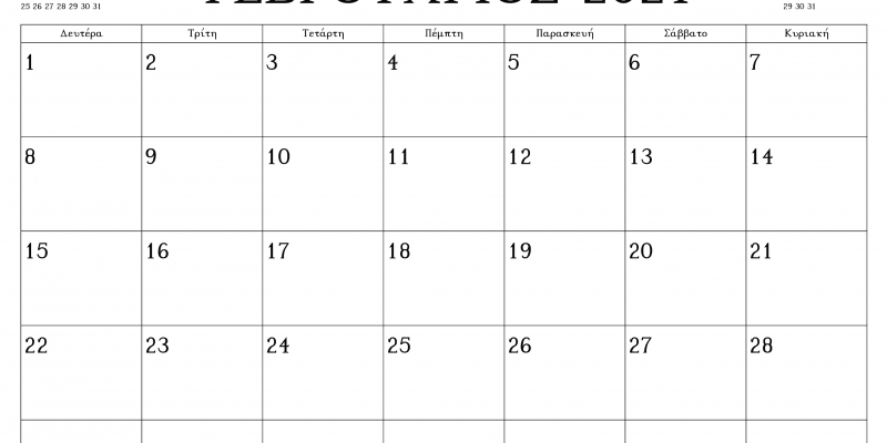 Από άποψη ημερολογιακής αρμονίας ο Φεβρουάριος του 2021 είναι ιδιαίτερος. Οι 28 μέρες του εκτείνονται σε τέσσερις πλήρεις εβδομάδες, η 1η του μηνός είναι σήμερα Δευτέρα και η τελευταία Κυριακή. Δεν πρόκειται βέβαια για ένα εξαιρετικά σπάνιο φαινόμενο, αλλά όποτε συμβαίνει τραβά την προσοχή, ακόμη και της Microsoft, που θέλησε να υπογραμμίσει την συμμετρία του φετινού Φεβρουαρίου στο ηλεκτρονικό της ημερολόγιο.