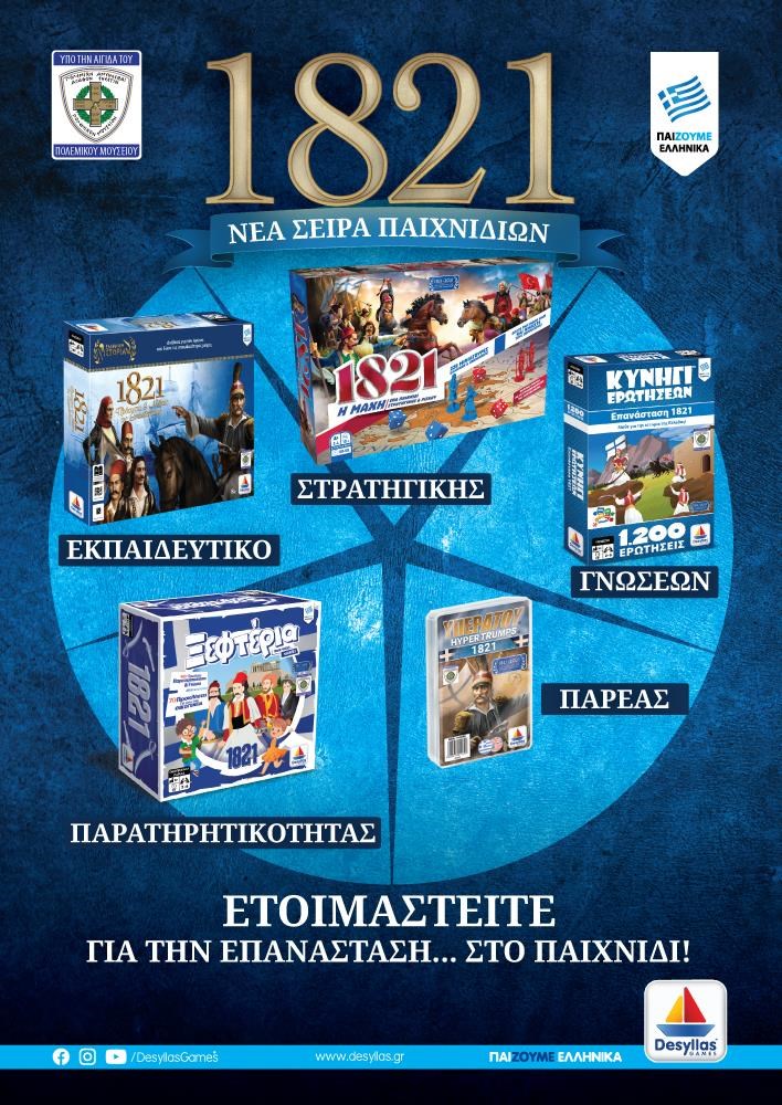 Η ελληνική εταιρεία εκδόσεων παιχνιδιών και βιβλίων Δεσύλλας και το Πολεμικό Μουσείο ενώνουν τις δυνάμεις τους και δημιουργούν για πρώτη φορά μια σειρά επετειακών παιχνιδιών για το 1821