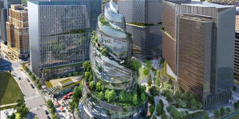 Η Amazon αποκάλυψε την αρχιτεκτονική των νέων της κεντρικών γραφείων στο Arlington της Virginia και σίγουρα θα είναι ένα κτίριο που θα ξεχωρίζει από όλα τα υπόλοιπα. Πρόκειται για ένα σπειροειδή ουρανοξύστη ο οποίος θα περιέχει ένα ζωντανό δάσος. Η Amazon το αποκαλεί “Helix” και θα είναι γεμάτο με “ποικιλία εναλλακτικών περιβαλλόντων εργασίας”. Οι σπείρες θα είναι γεμάτες με διαφόρων ειδών δέντρα και φυτά, προσφέροντας τη δυνατότητα πεζοπορίας μέσα στη…φύση(!?), ενώ θα είναι ανοιχτή η πρόσβαση στο κοινό τα Σαββατοκύριακα.