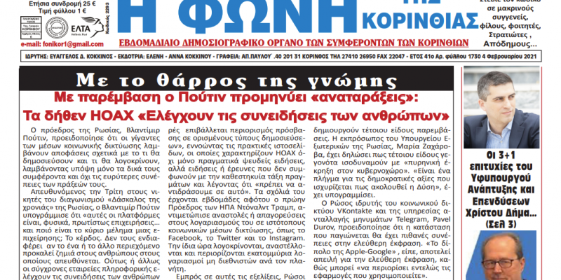 ΕΦΗΜΕΡΙΔΕΣΦΩΝΗ ΤΗΣ ΚΟΡΙΝΘΙΑΣ