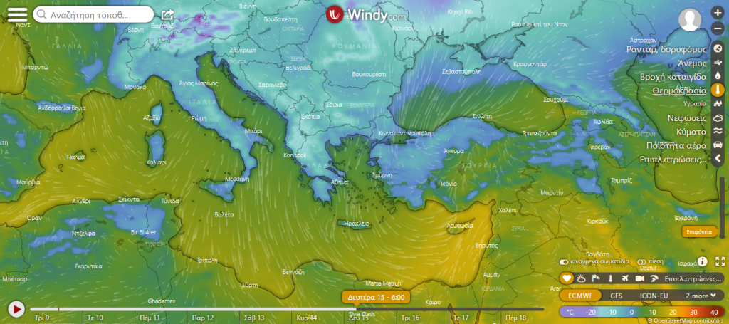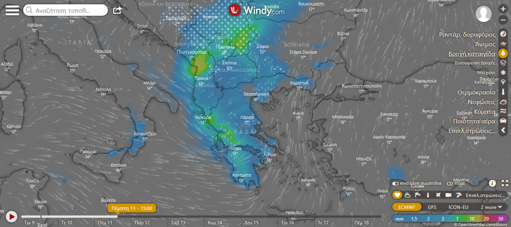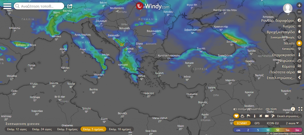 Δείτε τον χάρτη του meteo.gr για τον καιρό και τα φαινόμενα του προσεχούς εικοσιτετραώρου: