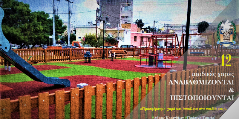 Σε συνέχεια του ολοκληρωμένου σχεδίου αναβάθμισης όλων των ΠΑΙΔΙΚΩΝ ΧΑΡΩΝ στον Δήμο Κορινθίων (πόλη και Δημοτικές Ενότητες) και μετά την αναβάθμιση-τοποθέτηση ενός μεγάλου αριθμού τους προηγούμενους μήνες, κατατέθηκε ΝΕΟ αίτημα προς το ΠΡΑΣΙΝΟ ΤΑΜΕΙΟ για την χρηματοδότηση εγκατάστασης 12 νέων παιδικών χαρών και πιο συγκεκριμένα: