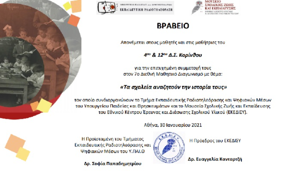 ΔΗΜΟΣ ΚΟΡΙΝΘΙΩΝ Βραβείο Μαθητικού Διαγωνισμού – 4ο & 12ο Δ.Σ. Κορίνθου By 8eCUgvCwsa 11/February/2021 ShareTweet 0