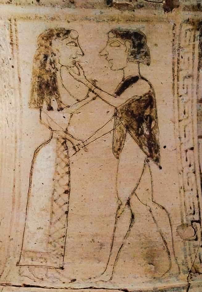 Οινοχόη με παράσταση συνομιλίας ερωτικού ζεύγους, που έχουν ερμηνευτεί ως Θησέας και Αριάδνη. Πρώϊμη Αρχαϊκή περίοδος, 7ος αιώνας π. Χ. Αρχαιολογικό Μουσείο Ηρακλείου