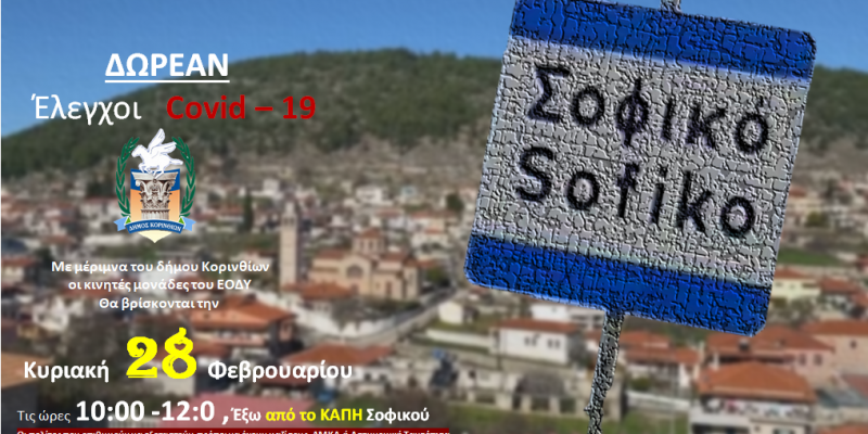 ΔΩΡΕΑΝ εξέταση για Covid σε Κόρινθο (Πέμπτη) και Σοφικό (Κυριακή)