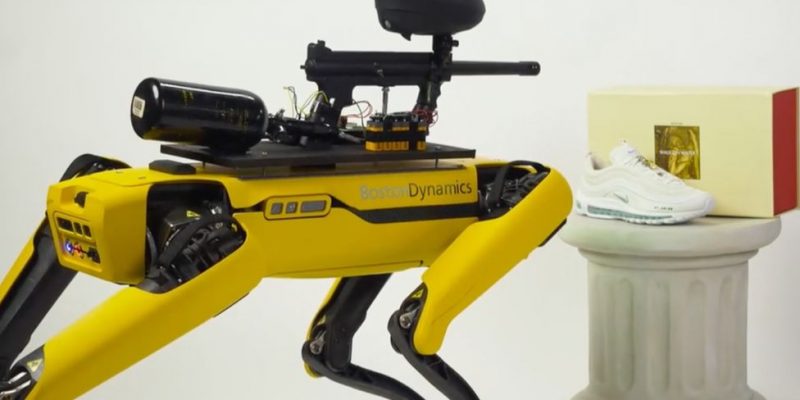 Μία γκαλερί τέχνης στις ΗΠΑ, θα επιτρέψει σε ανθρώπους να ελέγξουν απομακρυσμένα μέσα από εφαρμογή στο τηλέφωνό τους, το ρομποτικό σκύλο της Boston Dynamics, Spot, ο οποίος στη συγκεκριμένη περίπτωση θα διαθέτει ένα paintball όπλο στην πλάτη του. Η Boston Dynamics καταδίκασε το project, αποκαλώντας το μία προκλητική χρήση της τεχνολογίας του Spot, ενώ προειδοποίησε πως αν οι διοργανωτές προχωρήσουν σε αυτό, θα ανακληθεί η εγγύηση του ρομπότ και δε θα μπορεί να αναβαθμιστεί.