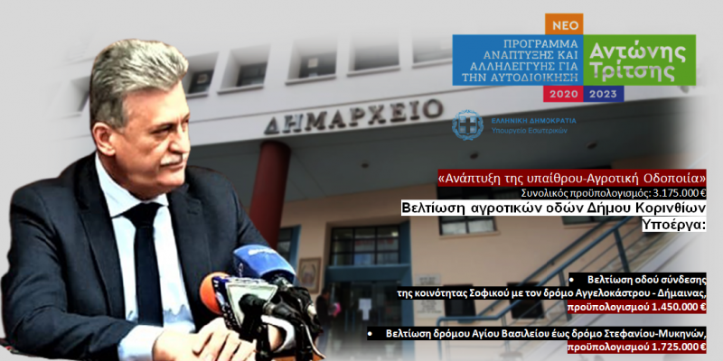 3.175.000 ευρώ από το «Αντώνης Τρίτσης για «Σοφικό – Αγγελόκαστρο – Δήμαινα» και «Άγ. Βασίλη – Στεφάνι – Μυκήνες»